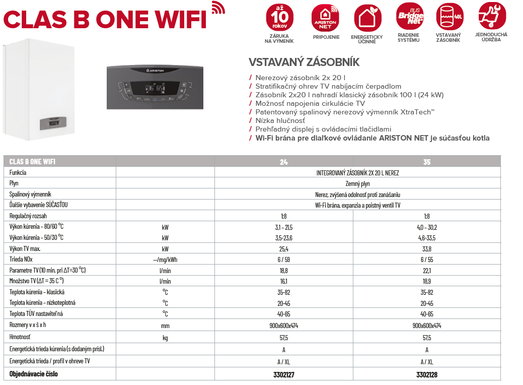 ARISTON CLAS B ONE WIFI 35 kondenzačný kotol s integrovaným zásobníkom 2x20L