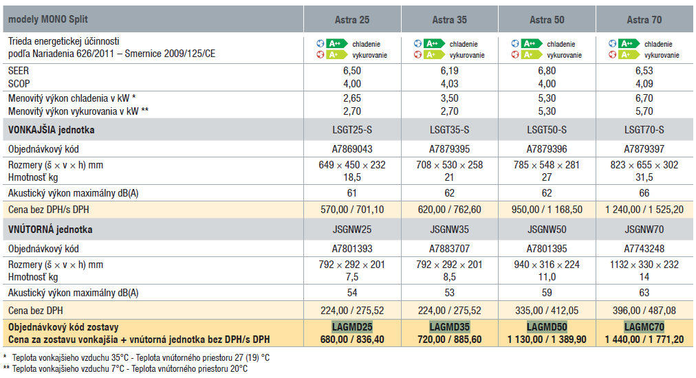 • Energetická účinnosť chladenia A++ a vykurovania A+